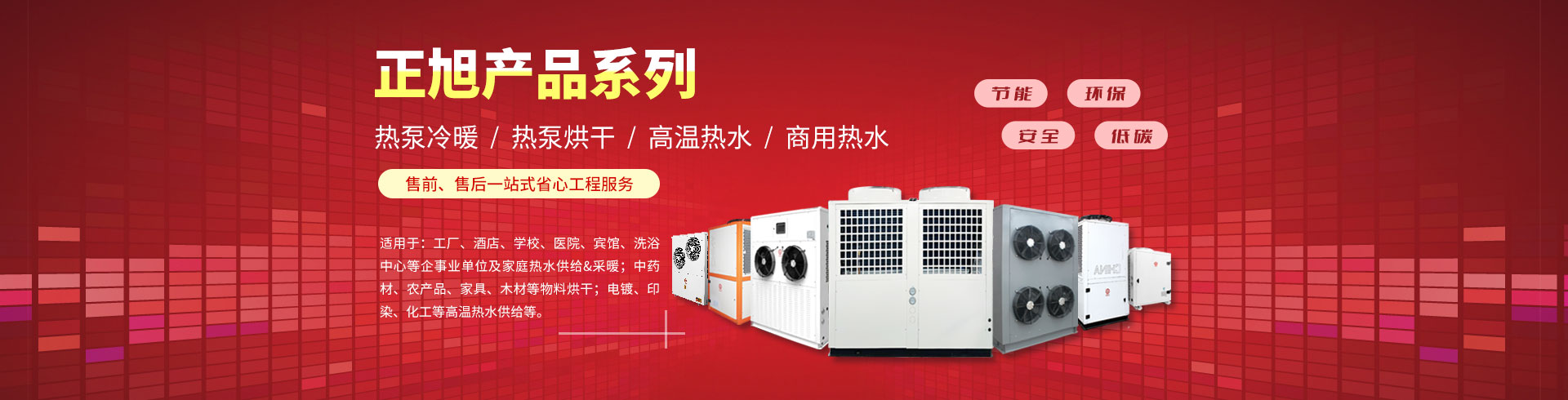 正旭旗下產(chǎn)品子站:烘干熱泵 | 高溫熱泵 | 采暖熱泵 | 空氣能熱水器